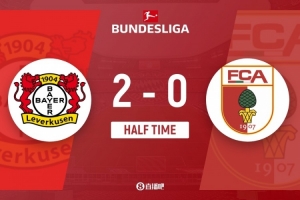 上半场补时3分钟,勒沃库森2-0奥格斯堡。